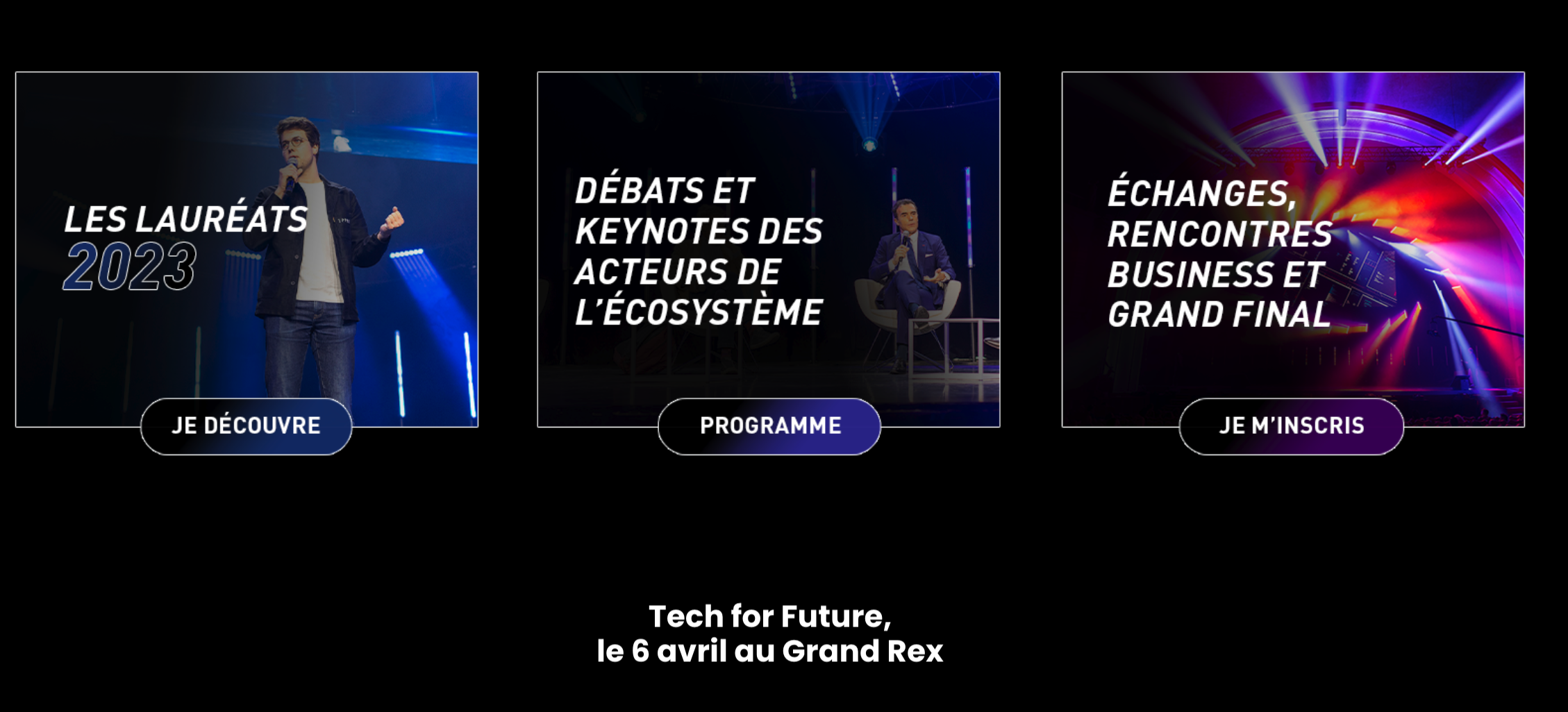 Tech pour l’Avenir, c’est également la révélation des 10 startups, Grands Gagnants 2023 parmi les 51 gagnants du Tech for Future Tour, qui a parcouru toutes les régions de France et d’Outre-Mer pendant 3 mois, à la recherche des pépites qui vont changer le monde.